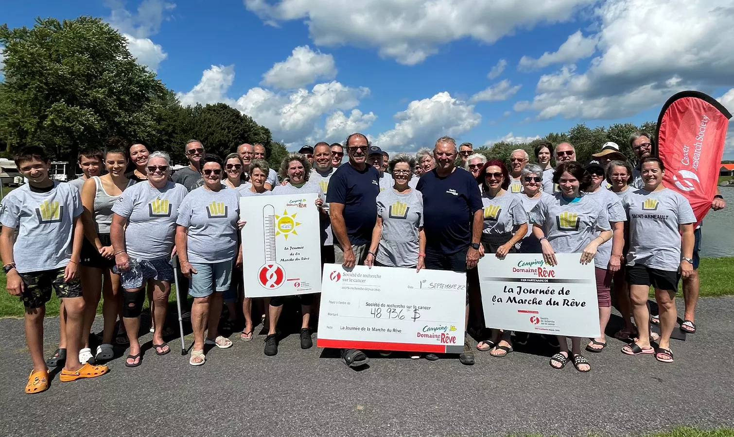 Since the beginning of this great adventure in 2014, a total of $213,000 has been raised, allowing us to award a research grant in the name of this event in September 2023. An incredible achievement for a community-organized event, especially one held at a campground! Among the community-organized events across Canada benefiting the Cancer Research Society, “La Journée de la Marche du Rêve” stands out as the largest in terms of annual donations.